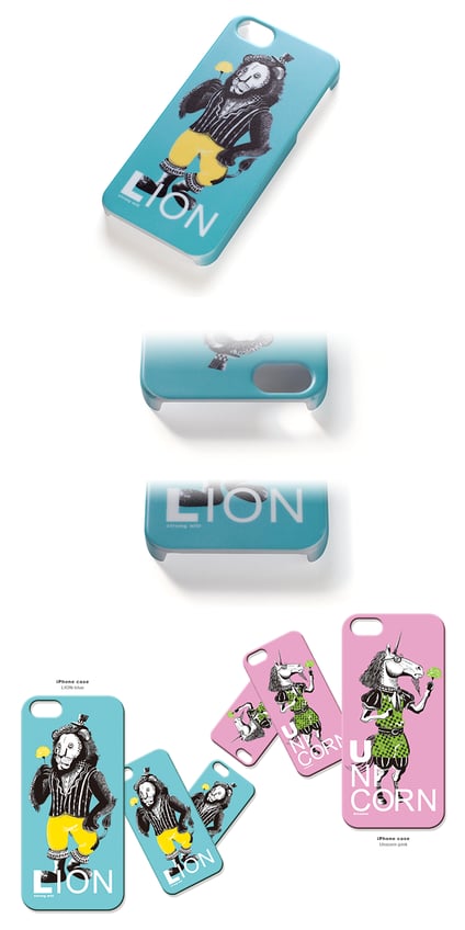 受注販売用にiPhoneケース作りました。絵柄はもともとA2サイズ用のイラストを小さく縮小したので、細部の印刷が潰れるかと心配していましたが、線の繊細な部分もしっかり出ておりました。 <絵柄は2種> ■LION-blue ■UNICORN-pink